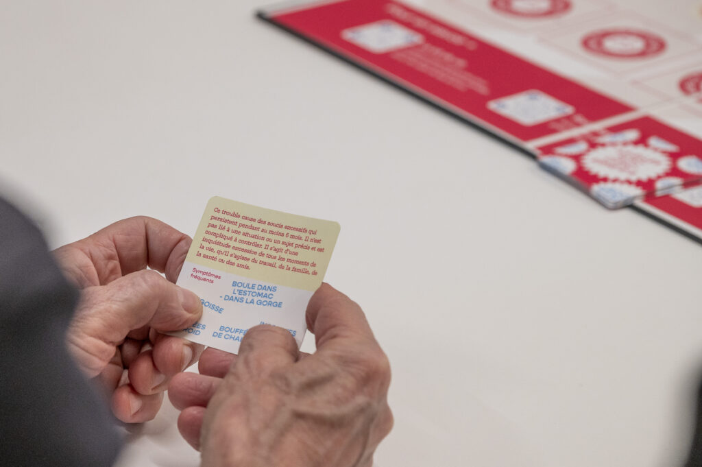 Au rez-de-chaussée, l’atelier Jeux, animé par Loïc Coheleach et Chiara Autuori, volontaires en service civique au sein de la ligne d’écoute Nightline, rassemblait des participants autour de jeux de plateau créés par leur association. L’objectif : déconstruire les clichés sur les troubles psychiques, mieux comprendre les mécanismes de la santé mentale, tout en favorisant les échanges entre générations. La convivialité du jeu a permis à chacun d’aborder un sujet sérieux de manière accessible et décomplexée.